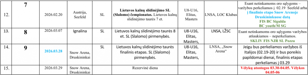 12.00-16.00 vyks Naktinio Slalomo čempionatas (perkeltas iš Liepkalnio)
