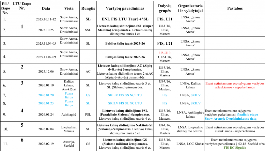 Lietuvos nacionalinės slidinėjimo asociacijos nariams                      2025 m. Gegužės mėn. 2 d., Vilnius